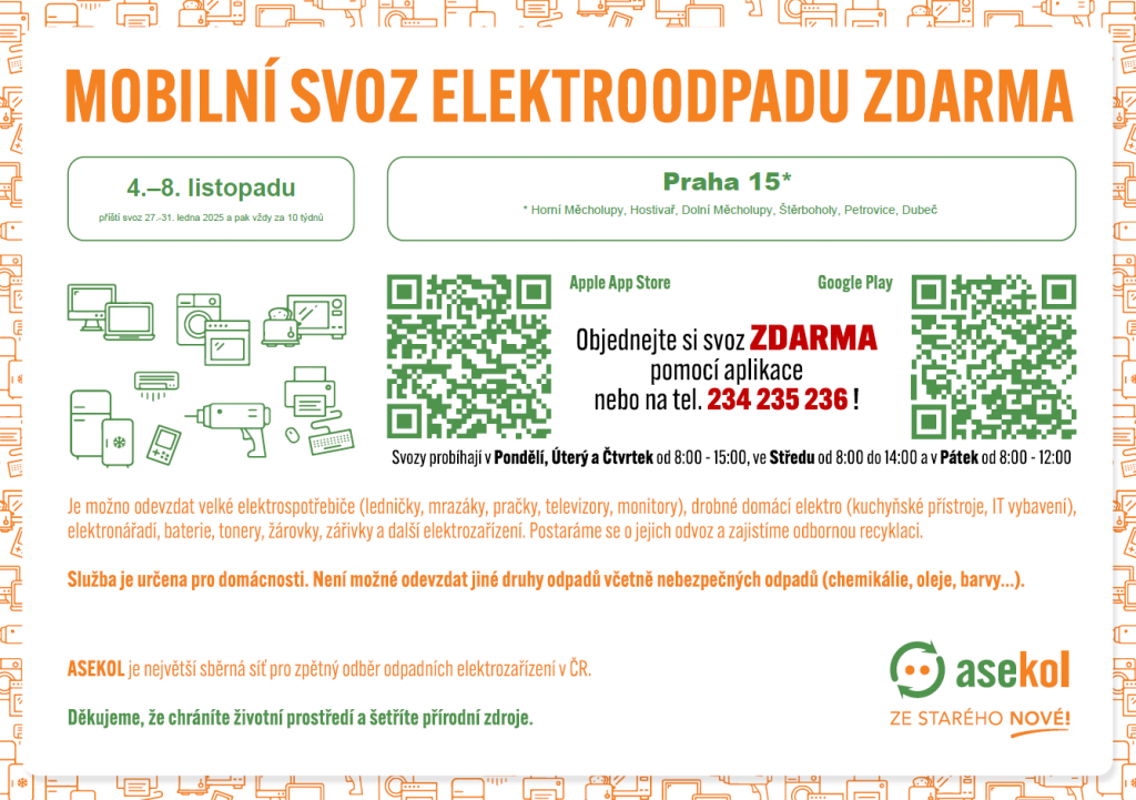 Svoz elektroodpadu 4.-8.11.